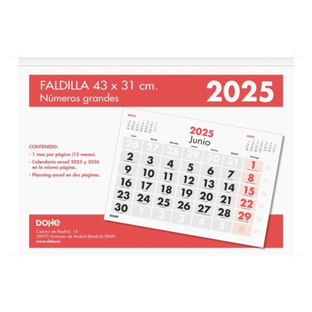 • Faldilla 2025 mes vista 430 x 310 mm números grandes