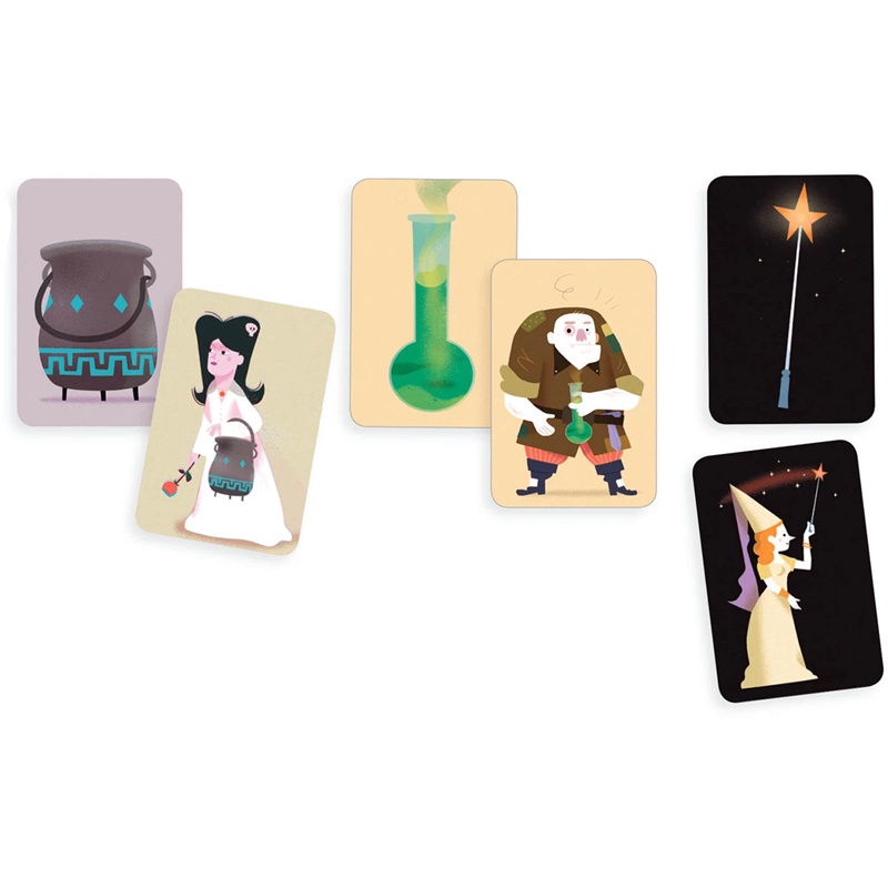 Juego de memoria cooperativo en un universo mágico. Para aprobar el examen de dotes mágicas, hay que aunar fuerzas y asociar cada personaje con el objeto mágico correcto. Las cartas se sacan a medida que avanza el juego y se colocan sobre la mesa, boca abajo o boca arriba sobre otra carta ya sacada si se piensa formar una pareja. Después de colocar todas las cartas, se comprueba el número de parejas. Si hay por lo menos 10 correctamente asociadas, todos los jugadores ganan.