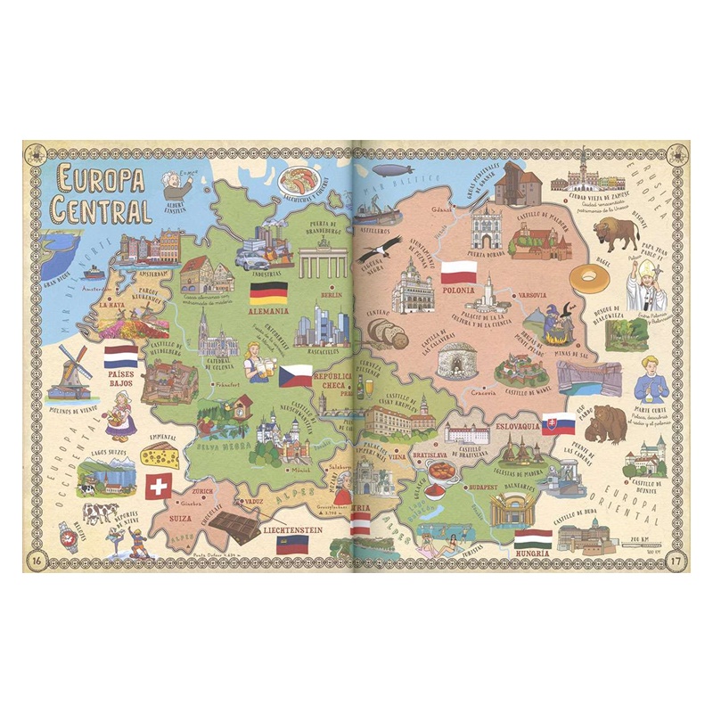 Descubre el mundo, sus países, banderas y costumbres a través de sus mapas. Desde el Ártico hasta la Antártida, los mapas nos presentan a cada uno de los continentes, con sus datos principales de habitantes, superficie y densidad, así como los países que los componen. Un atlas visual que muestra los principales monumentos, costumbres, gastronomía, fauna y flora, además de personajes históricos o artistas. Las magníficas ilustraciones son un reflejo fiel de cada uno de los tesoros de nuestro planeta y animarán a los jóvenes lectores a descubrir las maravillas que esconde.