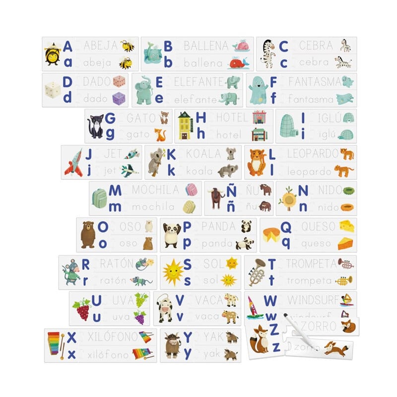 El niño/a asocia letras, palabras e imágenes para construir un colorido abecedario. Además, utilizando