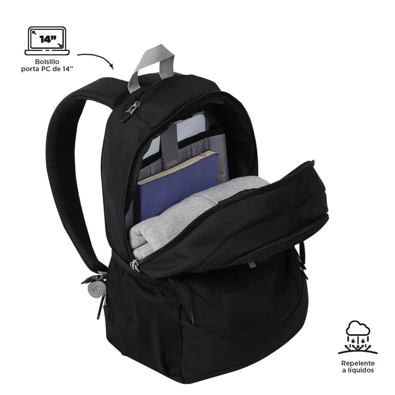 El modelo Goctal es uno de los más completos que puedes encontrar. Incluye compartimento porta pc de 14, organizador con llavero extraíble, bolsillos laterales para botella, pasador trasero para adaptar a trolley, bolsillo de fácil acceso en una de las correas y bolsillo para objetos delicados. Está confeccionado en poliéster y cuenta con espaldar ergonómico para que te sientas más cómodo. Dimensiones: 32.5 x 44 x 18