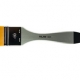 Paletina con mango corto de madera, barnizado plateado y virola niquelada. Composición: pelo sintético (filamentos de Ø 0,10 mm). Adecuado para acuarela y técnicas acuosas, pintura al óleo y acrílico. Anchura del pelo: 35 mm. Longitud del pelo: 29,5 mm. Longitud de la paletina: 205 mm.
