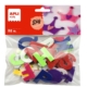 Cada bolsa contiene 40 corazones medida 30 mm (10 u.), 40 mm (15 u.) y 50 mm (15 u.) en distintos colores: rojo, lila, azul, rosa y amarillo.