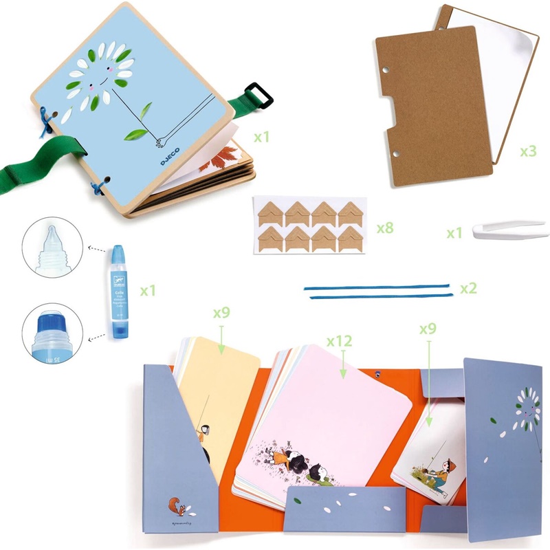 Un kit creativo para ayudar a los niños a descubrir la belleza de la naturaleza. Incluye una prensa para montar y llevar de paseo para recolectar plantas y flores y 30 cuadros y tarjetas para decorar. Una vez prensadas y secas, el niño puede pegar las plantas recogidas en los cuadros y las tarjetas poéticamente ilustrados. La bonita bolsita elástica sirve para guardar las plantas secas sin usar y almacenar todos los cuadros y tarjetas. Un kit que combina creatividad y descubrimiento de la naturaleza.