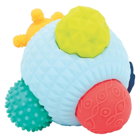 El juego contiene 5 pequeñas bolas sensoriales que no solo tienen un color diferente, sino que también se sienten diferentes. 5 bolitas, fáciles de agarrar para el bebé, que caben en una gran bola que las mantiene todas juntas. A los niños les encanta sacar las bolitas de la grande y luego encontrar a dónde van cada una. ¡Asegúrate de que los patrones coincidan!