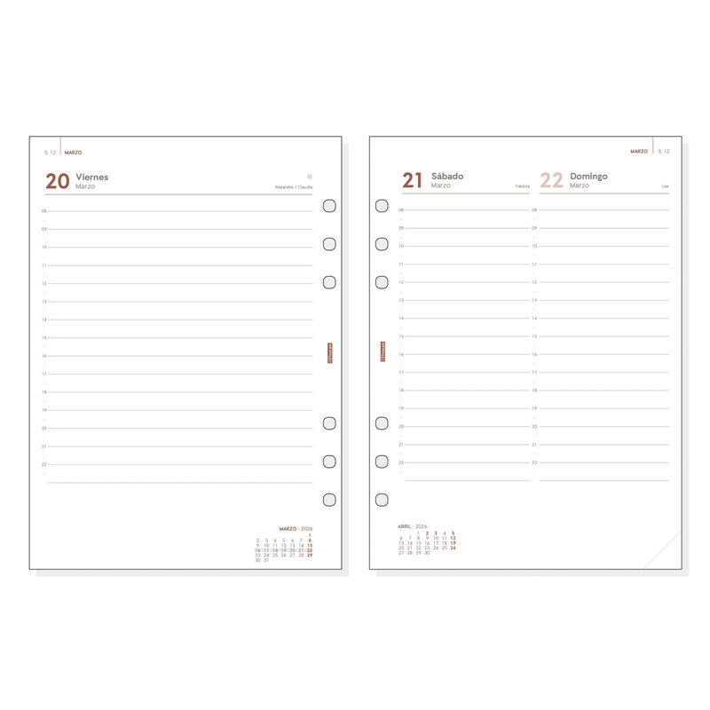 Recambio anual para agendas de anillas Finocam Open. La anualidad contiene la información útil relativa a: onomástica (excepto ed. portuguesa), festivos nacionales, cambios de estación e inicios de los años nuevos chino, musulmán, ortodoxo y hebreo. El recambio incluye plan anual despleglable y meses complementarios extra. Duración: Enero 2026 – Diciembre 2026 (12 meses). Interior: 1 Día Página. Amplio espacio de escritura para cada día. Con horas desde las 8:00h hasta las 22:00h. Con información de los festivos de España. Plan anual desplegable, planificación anual fija, horario, calendarios, anualidad y 2 meses complementarios Quincena Vista. Idioma del artículo: español. Formato: 1000 – 155×215 mm. Papel. 70 g/m². Papel FSC®.