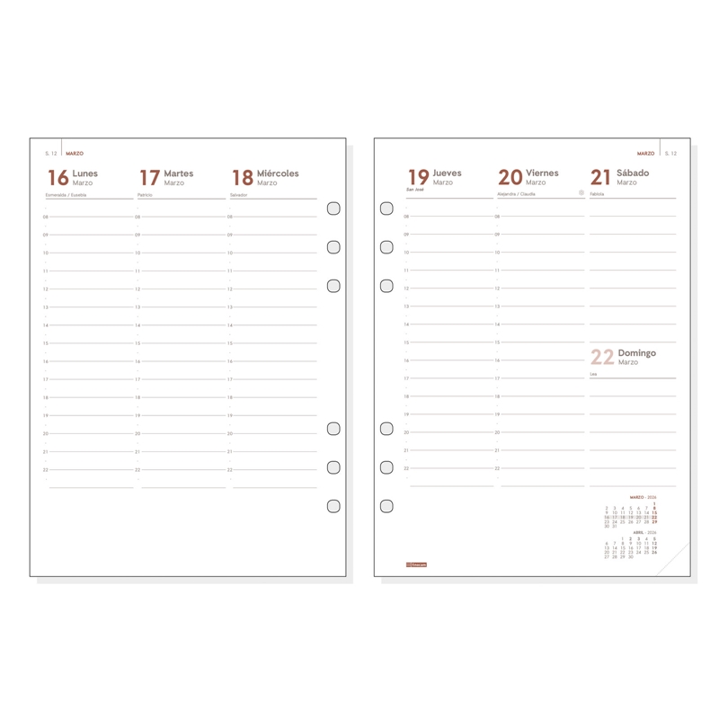 Recambio anual para agendas de anillas Finocam Open. La anualidad contiene la información útil relativa a: onomástica (excepto ed. portuguesa), festivos nacionales, cambios de estación e inicios de los años nuevos chino, musulmán, ortodoxo y hebreo. El recambio incluye plan anual despleglable y meses complementarios extra. Duración: Enero 2026 – Diciembre 2026 (12 meses). Interior: Semana Vista Vertical. Visión de la semana completa en vertical. Con información de los festivos de España. Plan anual desplegable, planificación anual fija, horario, calendarios, anualidad y 6 meses complementarios Quincena a la vista. Idioma del artículo: español. Formato: 1000 – 155×215 mm. Papel. 80 g/m². Papel FSC®.