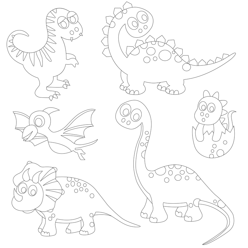 – 6 figuras de dinosaurios para pintar con arenas de colores. Las figuras estan fabricadas del mismo material que la lámina de base. Son rígidas para que las puedas mover con facilidad o bien pegar sobre el dibujo una vez pintadas con arenas.